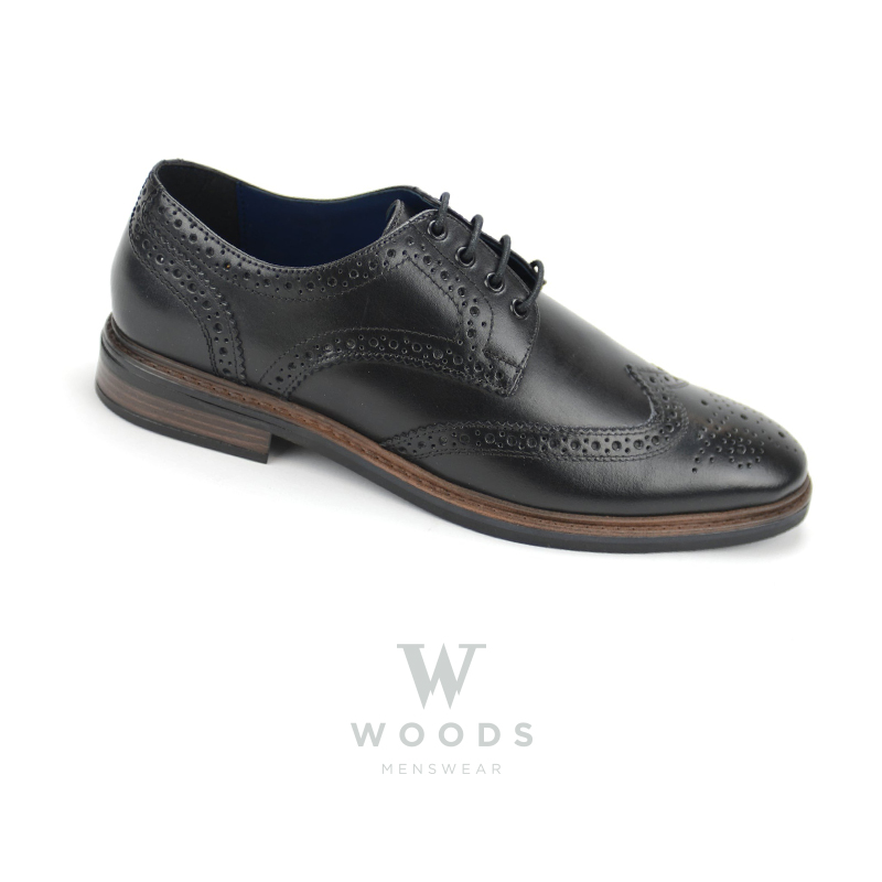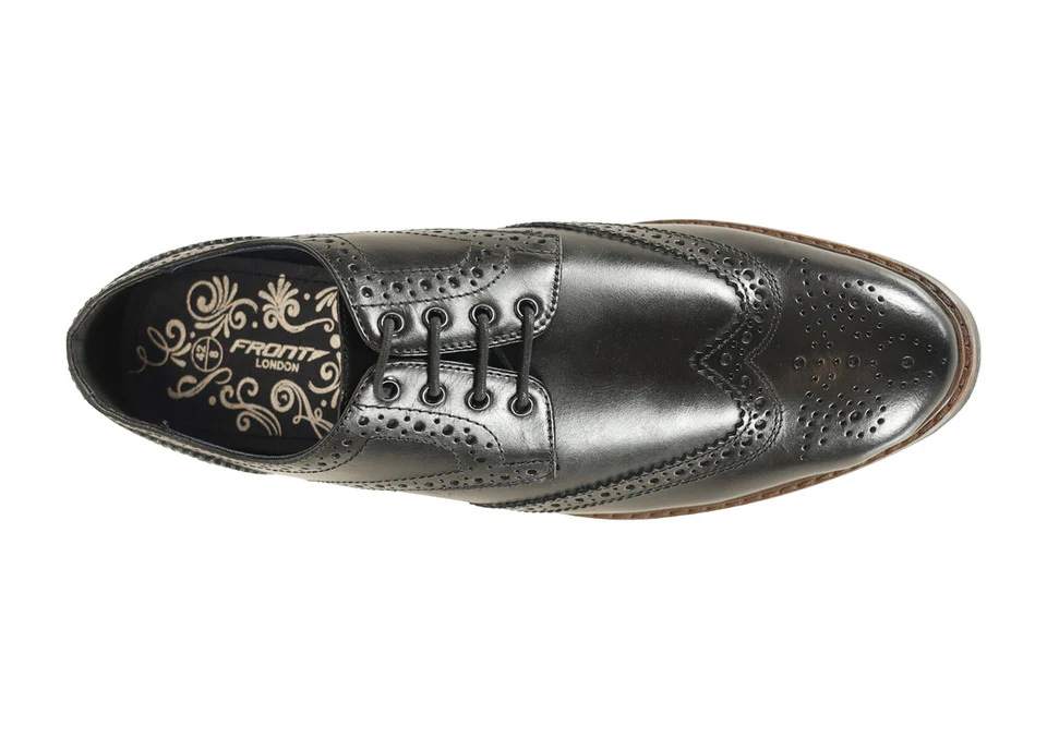 The Morrison by Front in black leather is a refined men’s Derby brogue that delivers timeless sophistication for every occasion. Crafted from premium smooth leather with traditional wingtip perforations and serrated edging, it blends heritage styling with everyday practicality.