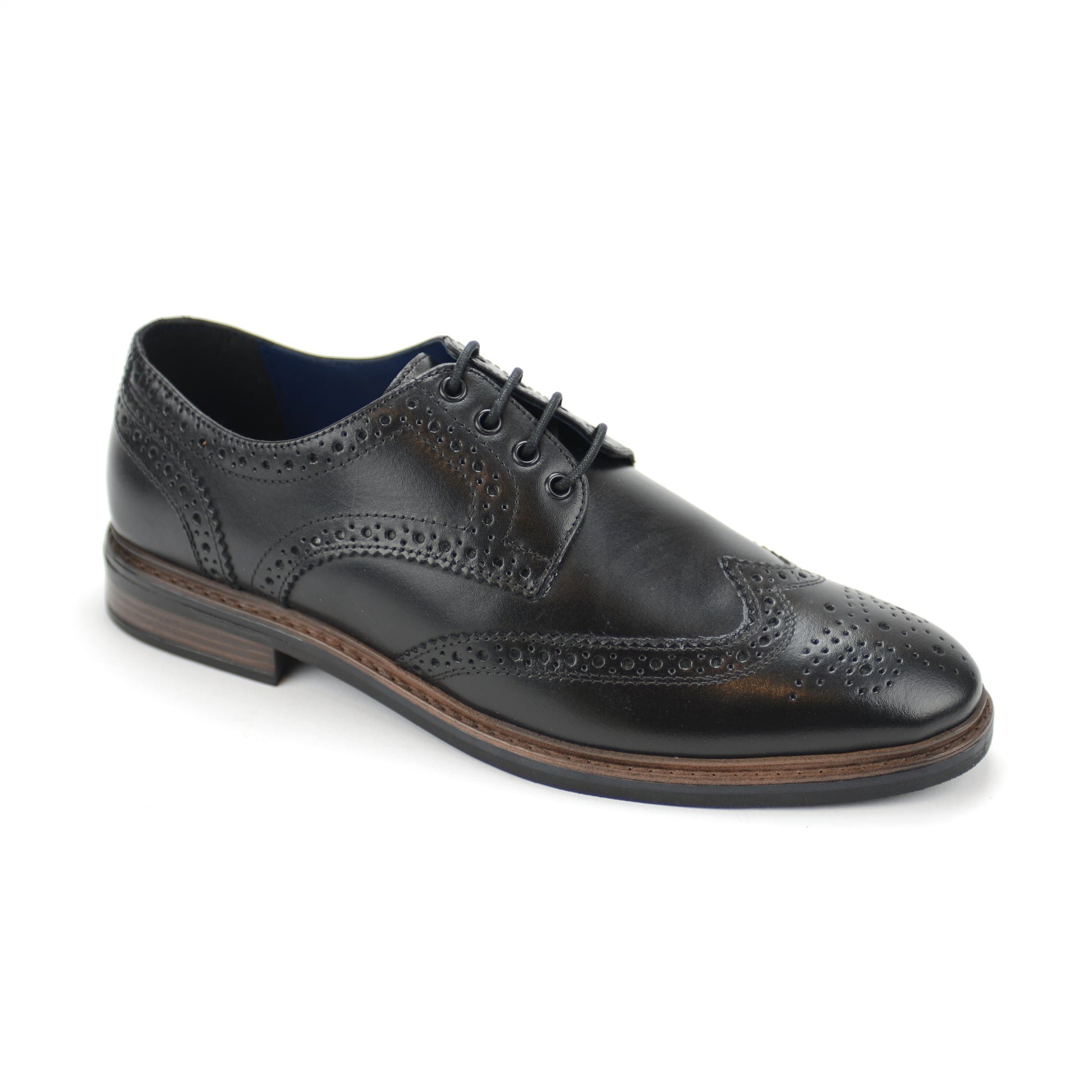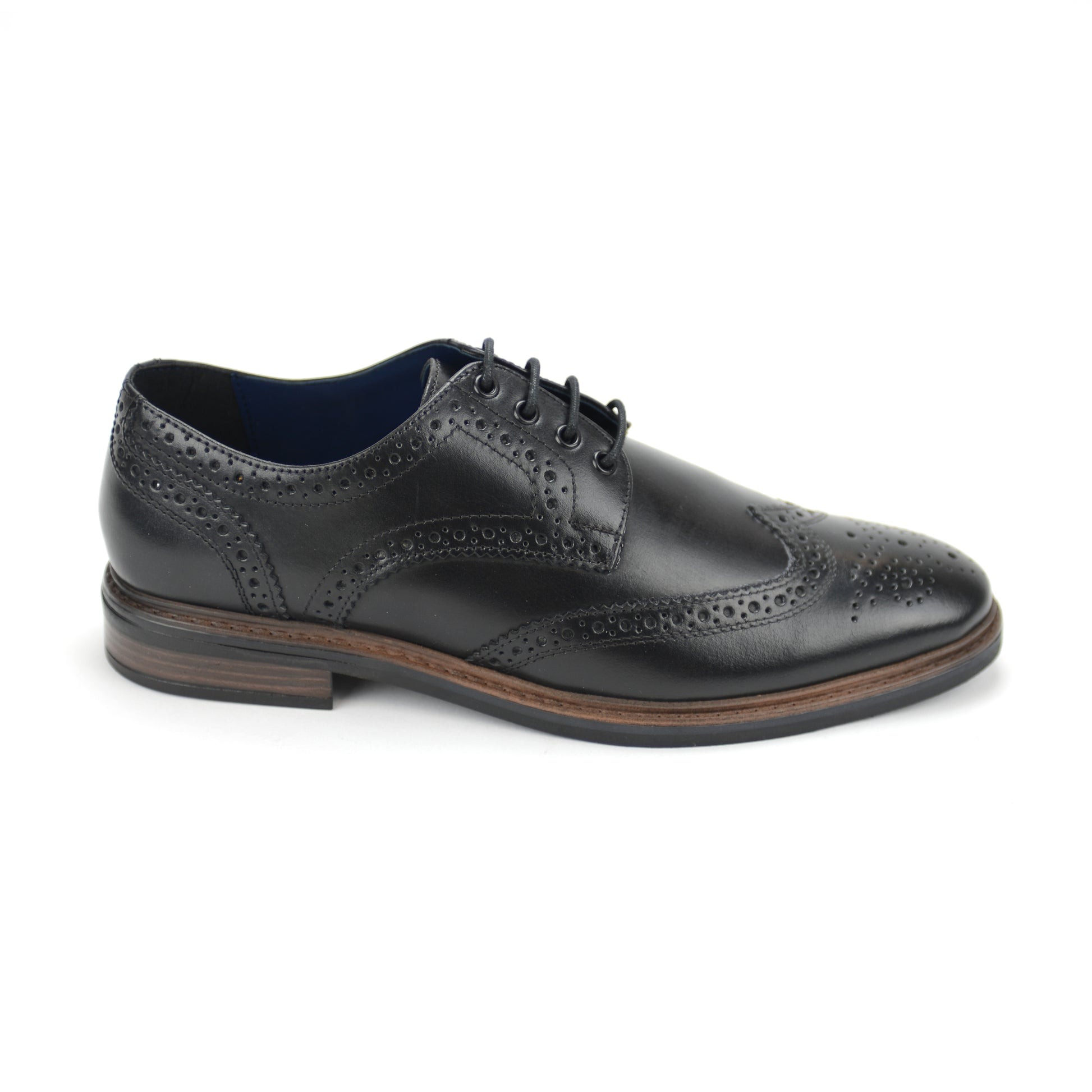 The Derby lace-up design ensures a wider, adjustable fit, while the contrast-stitched sole adds a subtle modern twist to the classic silhouette. Perfect for pairing with tailored suits, business wear, or smart-casual looks, this black leather brogue transitions effortlessly from workdays to formal events.