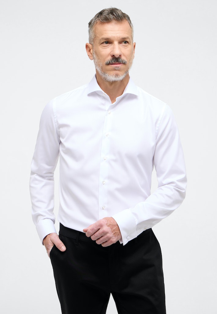 Keep it sharp and discreet with The Willowmere Cover Twill — an opaque slim fit shirt designed to block show-through and keep your style clean. Woven from 100% cotton twill with a non-iron finish, it delivers lasting comfort and crease resistance. The shark collar adds modern edge, while the turn-up cuffs make it ready for cufflinks or a bow tie when the occasion calls. A versatile Cover Shirt built for boardrooms and black-tie alike.